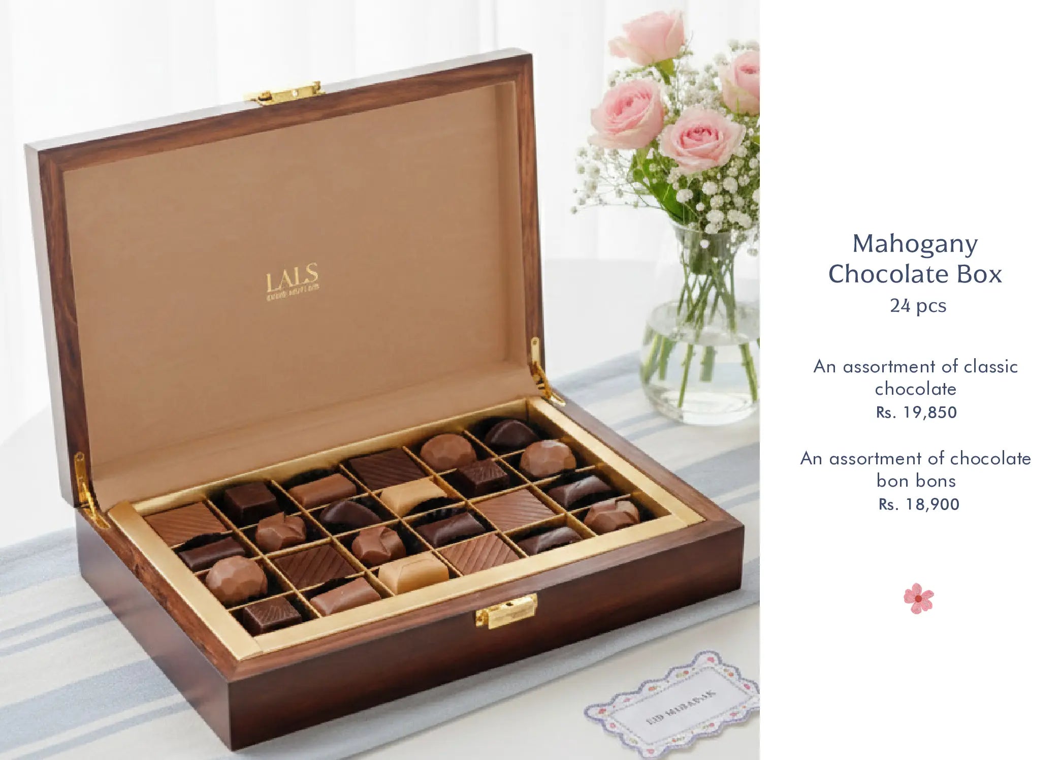 Lals has been the nation's leading chocolate & gifting brand since 2006. We have been serving Pakistan's top companies by managing their corporate gifting needs. As a nationwide renowned brand in the chocolate, gourmet date & gifting industry, Lals has elevated the concept of business gifting into an art.