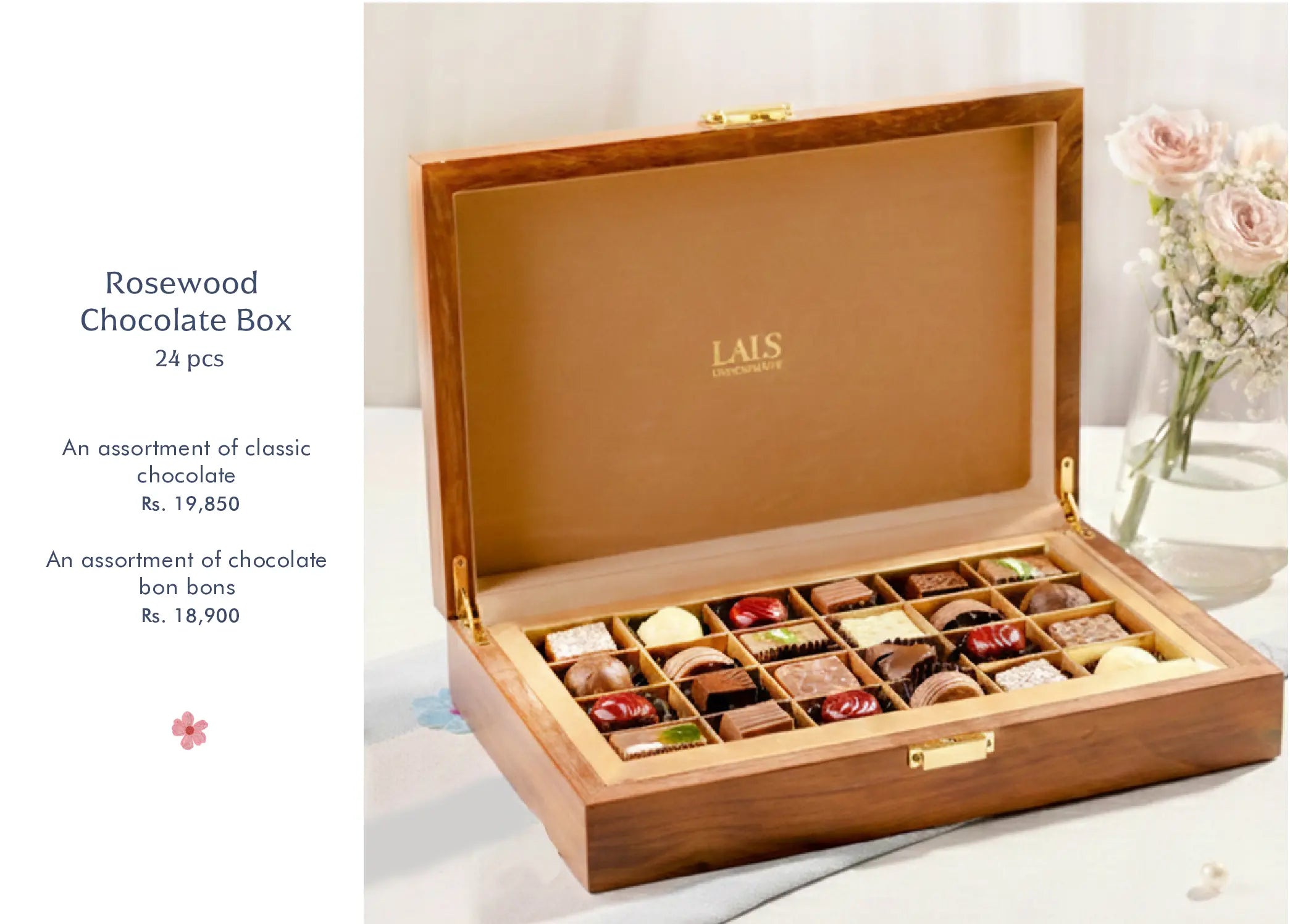 boxes, handcrafted bon bons, celebratory cakes, and signature Lals