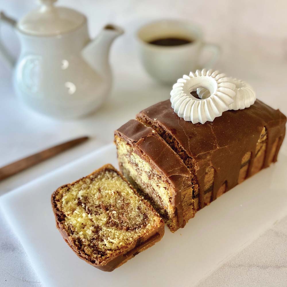Our Chocolate Marble Cake is soft, buttery, and beautifully balanced in flavor. Each slice reveals a swirl of rich chocolate and light vanilla, creating the perfect harmony of taste and texture. Finished with a glossy dark chocolate ganache glaze, it’s indulgent yet wonderfully light. Serve it at a tea party, share it with guests, or enjoy it as a little moment of chocolate bliss all to yourself.