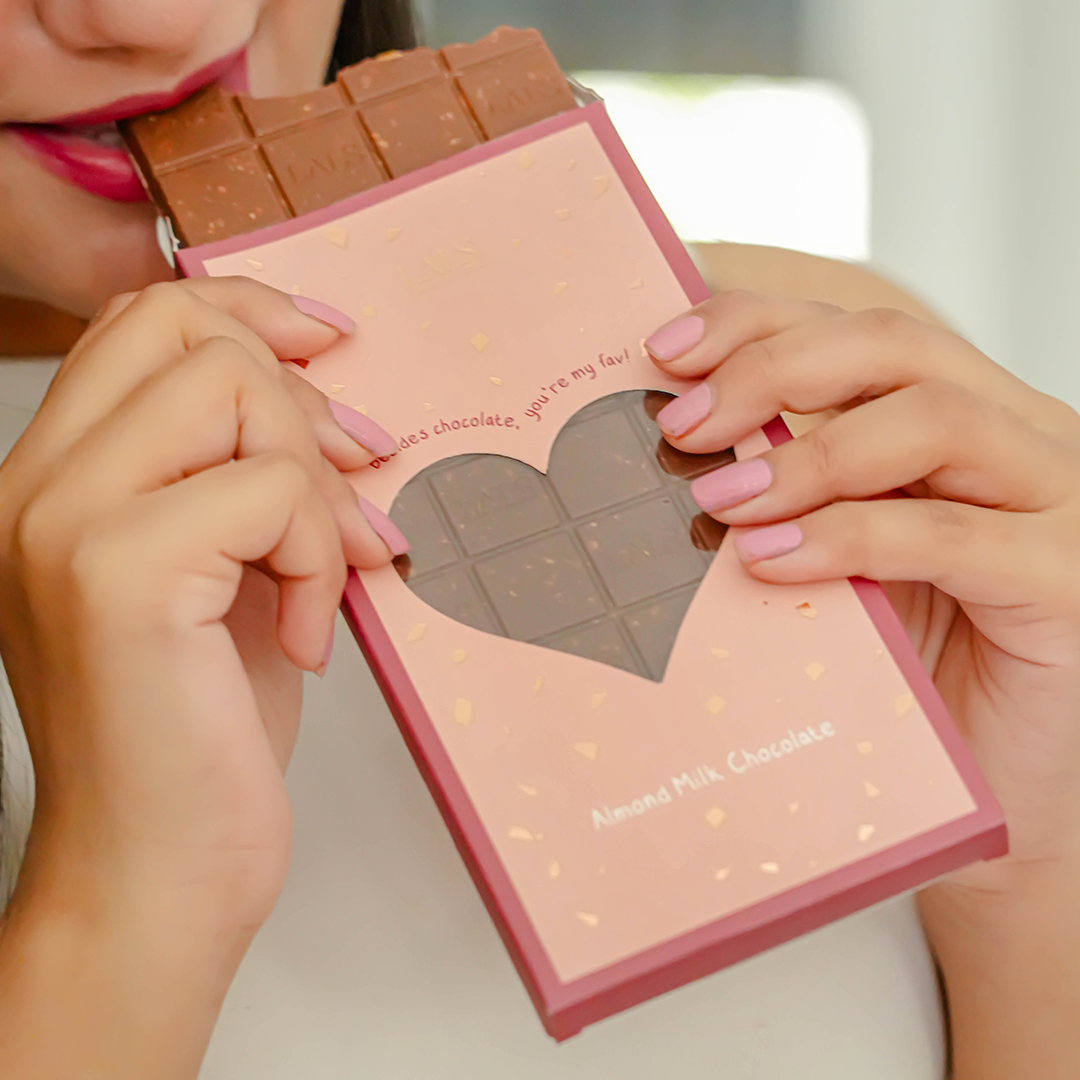 Savor the creamy goodness of our Valentine’s Almond Milk Chocolate, where rich milk chocolate with 36% cocoa meets crunchy almonds in perfect harmony. Each bite is a delightful balance of sweetness and nuttiness, making it the ideal treat to share with your special someone this Valentine’s Day.